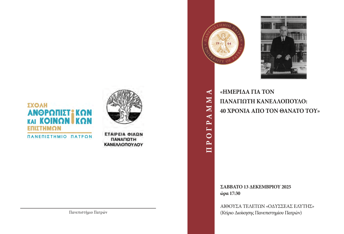 Ημερίδα για τον Παναγιώτη Κανελλόπουλο: 40 χρόνια από τον θάνατό του, Σάββατο 13 Δεκεμβρίου 2025, 17.30