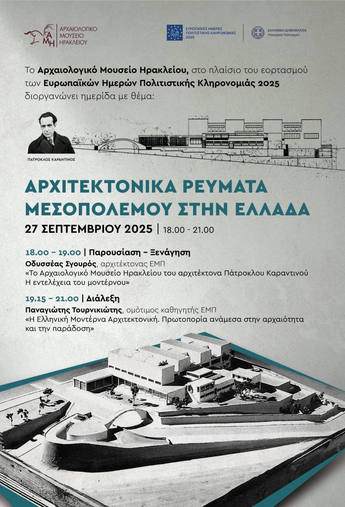 The post Το Αρχαιολογικό Μουσείο Ηρακλείου συμμετέχει στις Ευρωπαϊκές Ημέρες Πολιτιστικής Κληρονομιάς 2025 appeared first on ΤΜΗΜΑ ΙΣΤΟΡΙΑΣ-ΑΡΧΑΙΟΛΟΓΙΑΣ, ΠΑΝΕΠΙΣΤΗΜΙΟ ΠΑΤΡΩΝ.