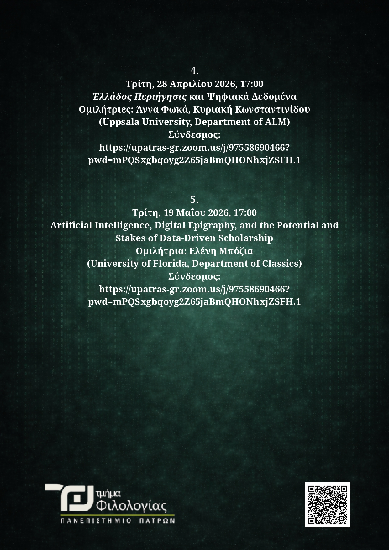 Σύνδεσμος: https://upatras-gr.zoom.us/j/97558690466?pwd=mPQSxgbqoyg2Z65jaBmQHONhxjZSFH.1